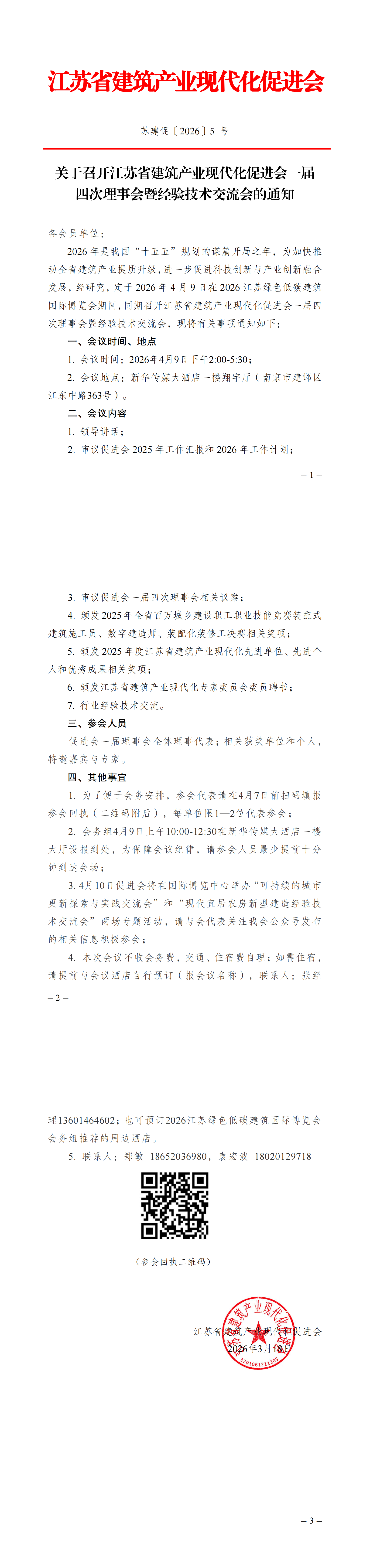 关于召开江苏省建筑产业现代化促进会一届四次理事会暨经验技术交流会的通知