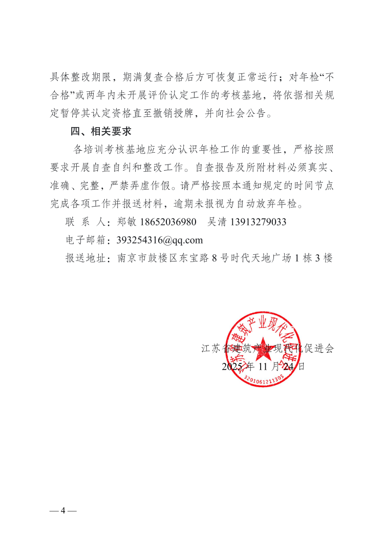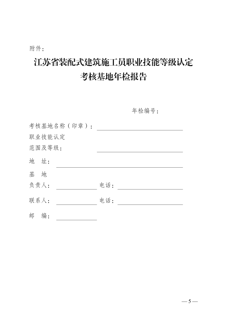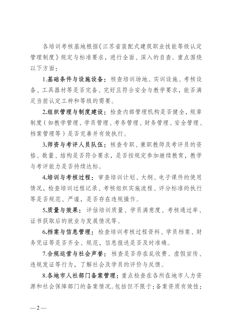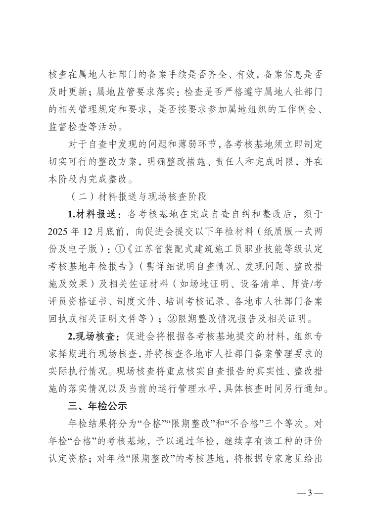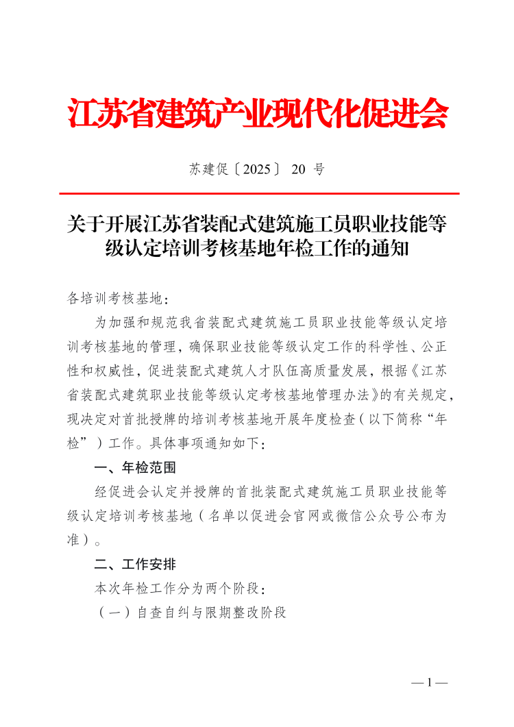 关于开展江苏省装配式建筑施工员职业技能等级认定培训考核基地年检工作的通知